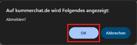 Bestätigt eure Abmeldung im Bestätigungsfenster, anschließend werde ich aus dem Chat abgemeldet und könnt euch beim nächsten Besuch wie gewohnt anmelden.